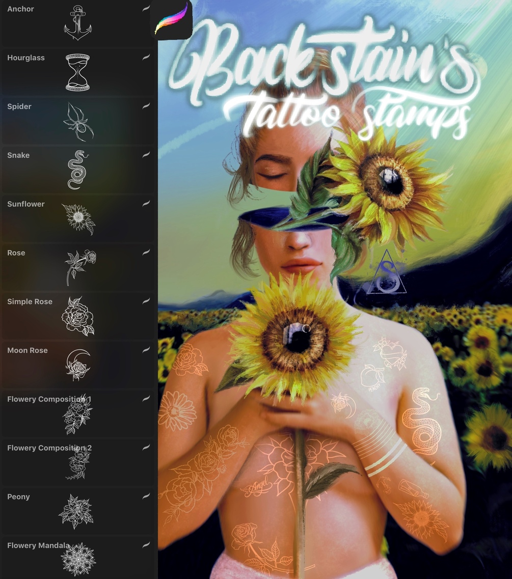 Hey everyone! I love adding tattoos to my drawings so I came up with this! The brushpack comes with 20 tattoo stamps.